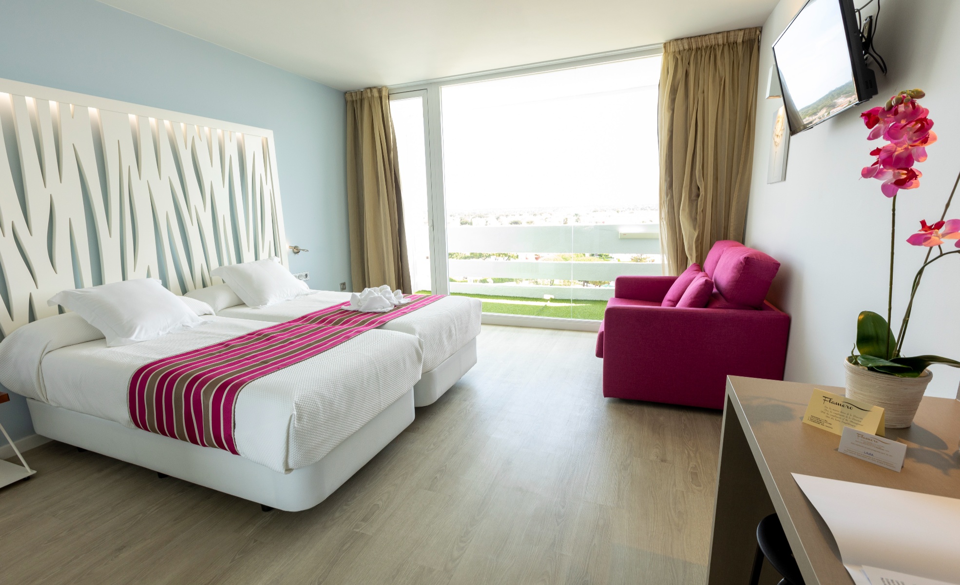 Entre en la galería de fotos del hotel y podrá ver las instalaciones y alrededores del Hotel Flamero. Sus habitaciones, la piscina, así como sus restaurantes y bares. Dé un paseo visual por todos los rincones que ofrecemos.